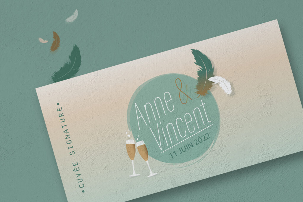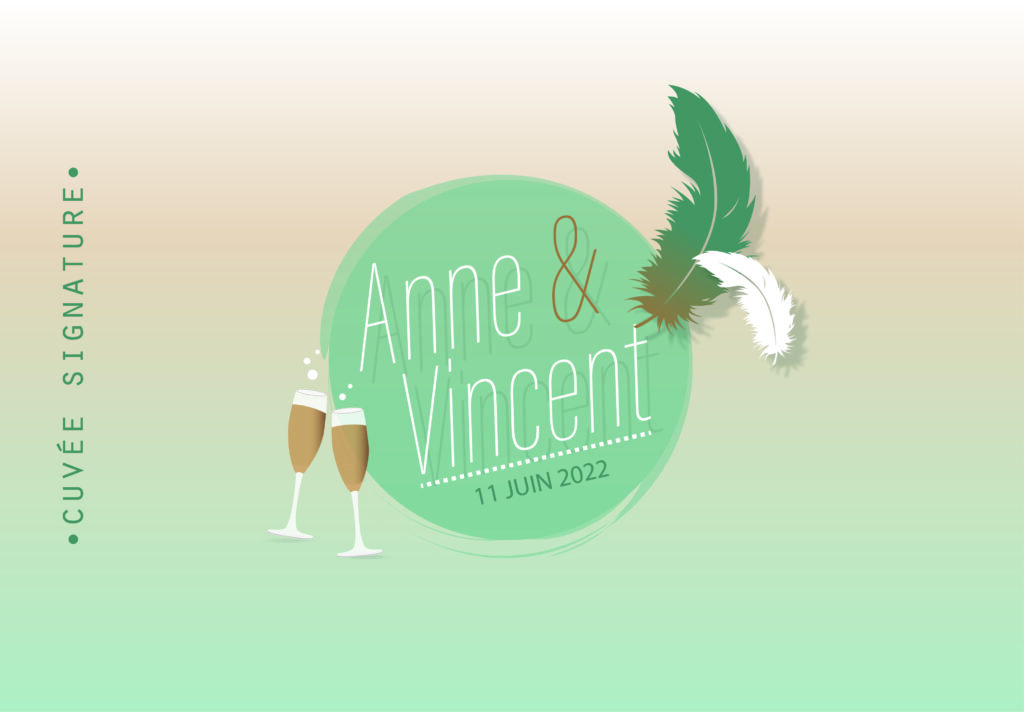 Quoi de mieux pour mettre en valeur notre région qu’une bouteille de champagne avec étiquette personnalisée ? Qui plus est, offerte lors du mariage de Anne & Vincent, où Anne est elle-même graphiste !