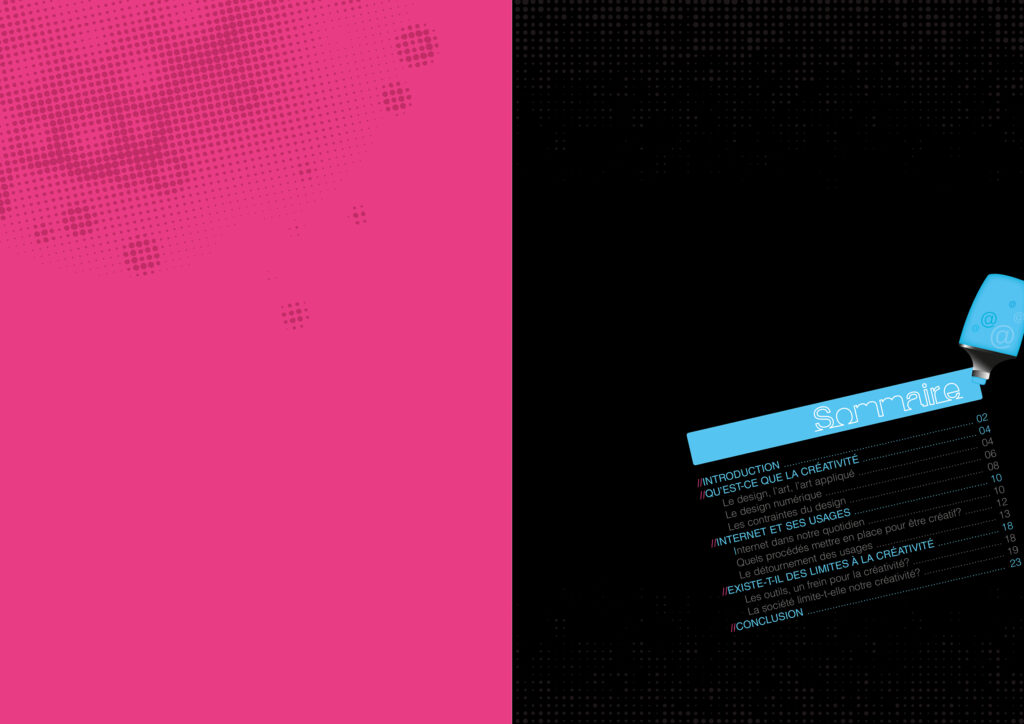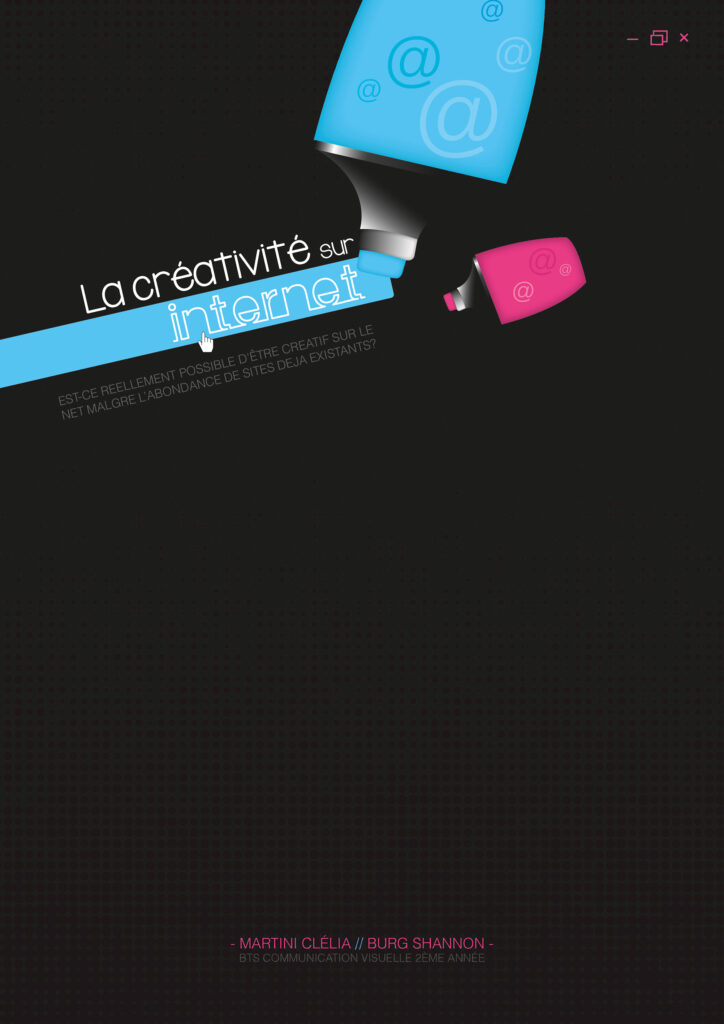 Graphisme, Print La créativité sur internet 06/03/2013 / Mise en page d’un exposer sous forme de livret.Projet effectué dans le cadre de ma 2ème année de BTS Communication visuelle.