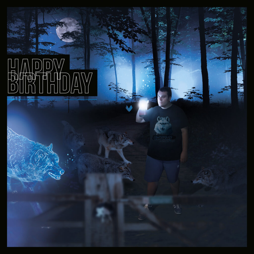 Graphisme, Photomontage La force du loup 06/03/2022 / Réalisation d’un photomontage de Vincent avec des loups pour son anniversaire.