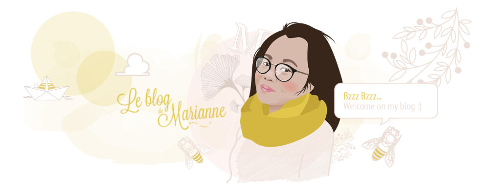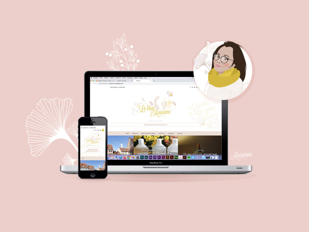 Marianne est une personne super positive et souriante, et le jaune m’est apparu comme une évidence. Elle m’a laissé carte blanche pour lui créer son nouveau design et l’intégrer en XML via blogger.