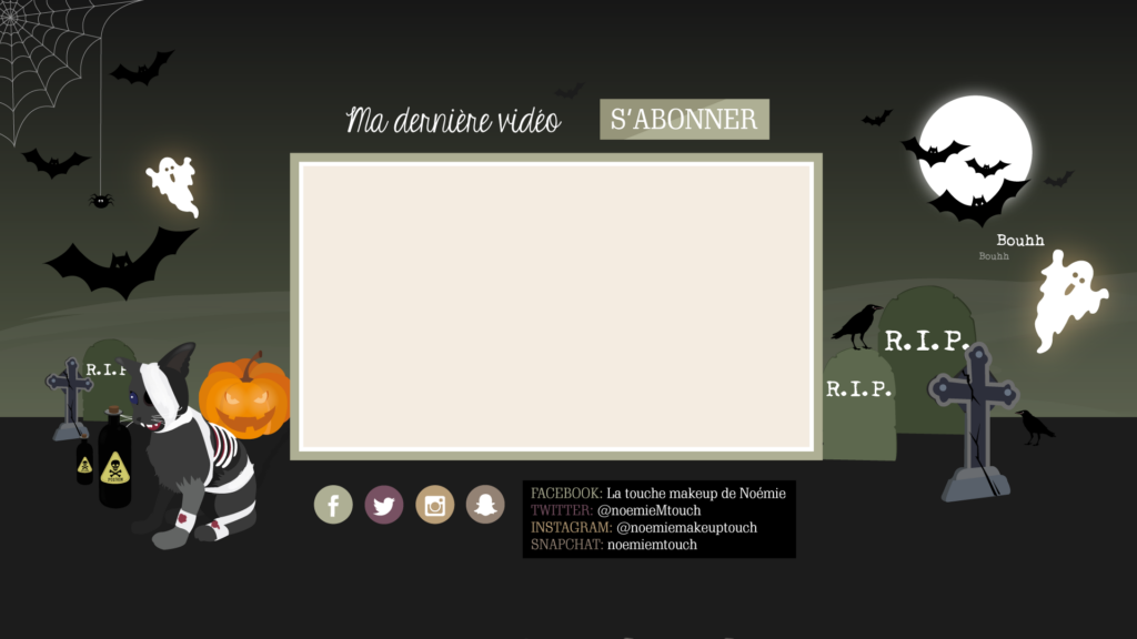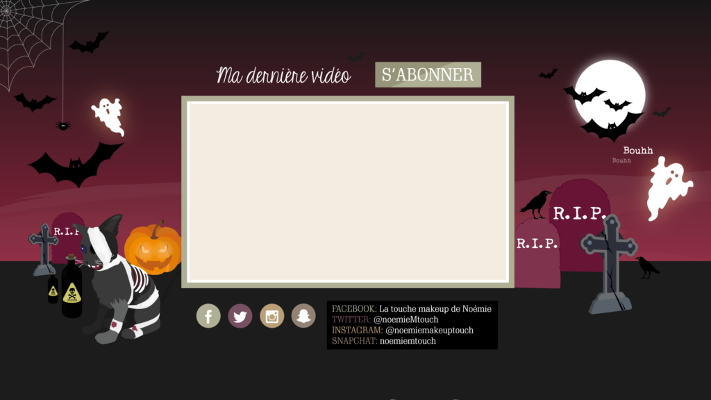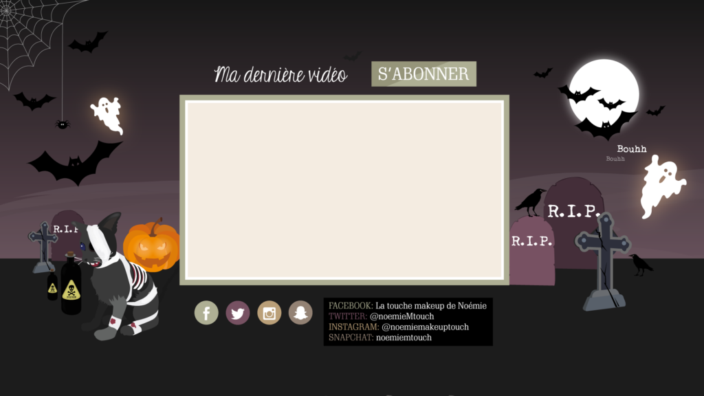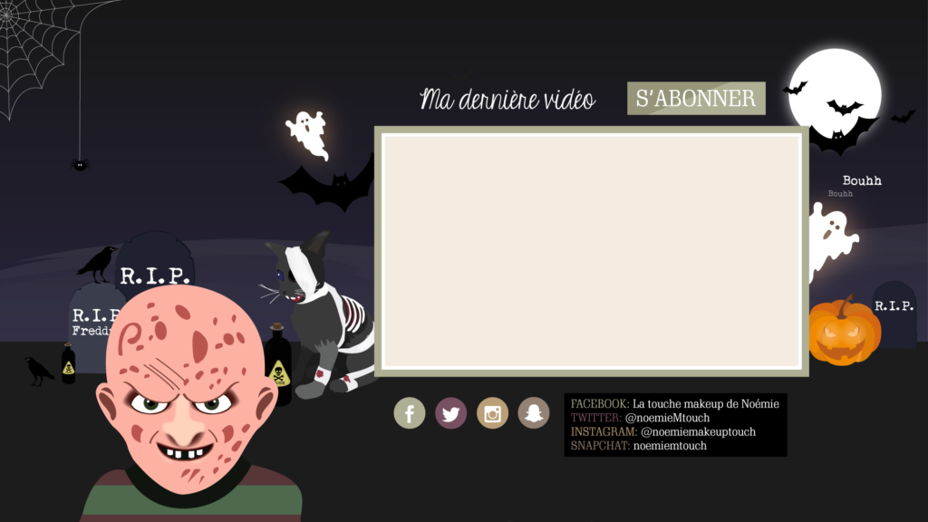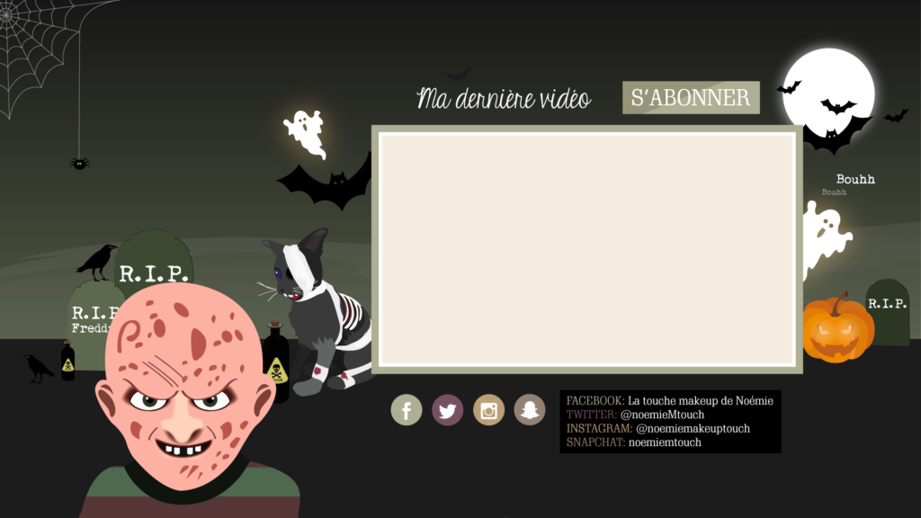 MISSION: Réaliser des bannières de fin de vidéo pour Noémie qui est une grande fan du thème d’Halloween, en reprenant différents éléments de décoration qu’elle possède.