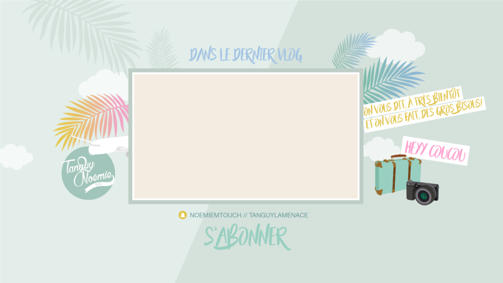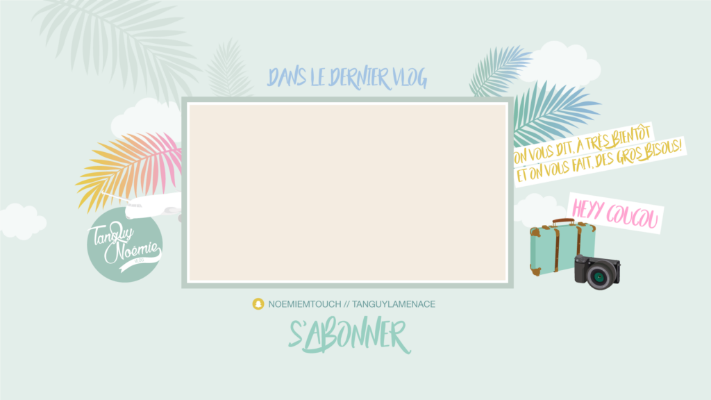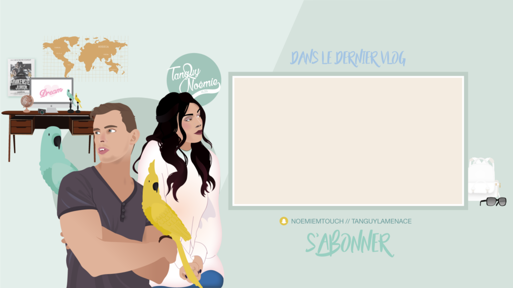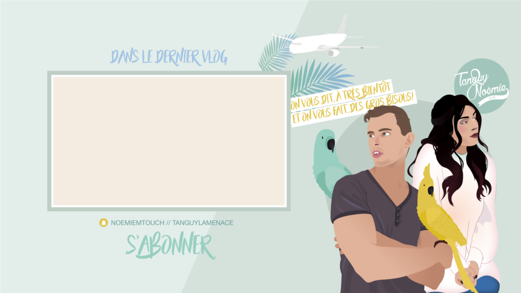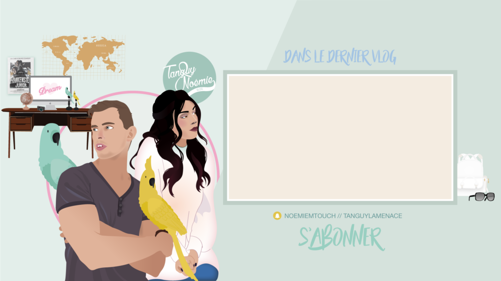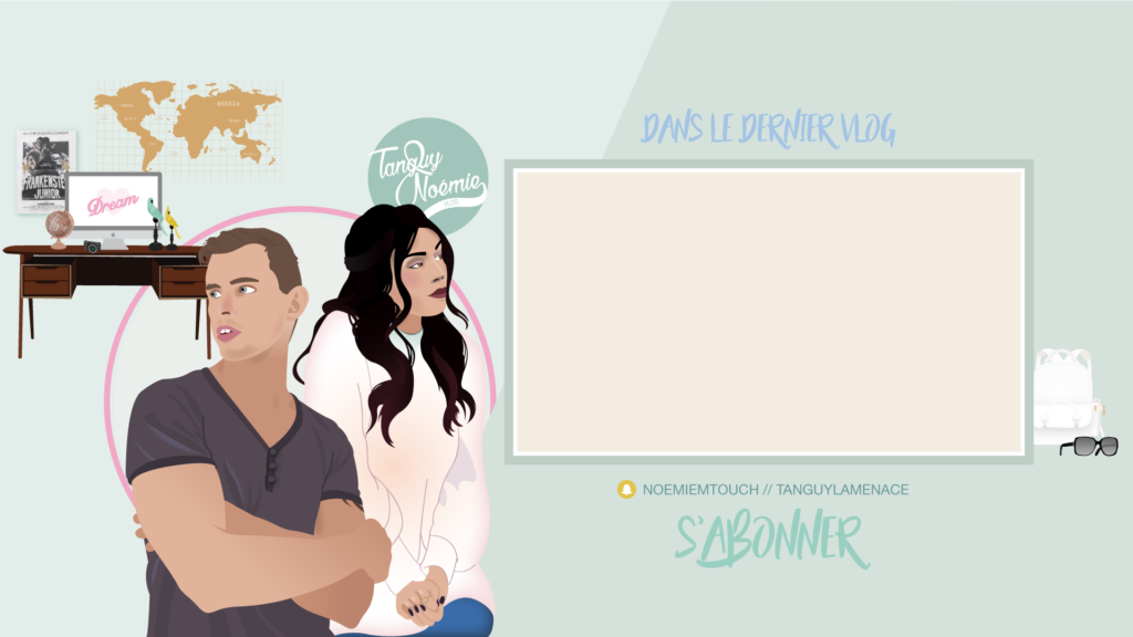MISSION: La chaîne youtube de Noémie (NoemieTVChannel) change de nom et devient une chaîne commune avec Tanguy, son compagnon. Noémie a donc souhaité créer un nouveau logo, une bannière ainsi qu’une image de fin de vidéo de la chaîne YouTube afin d’avoir une nouvelle communication graphique plus adaptée à la nouvelle chaîne.